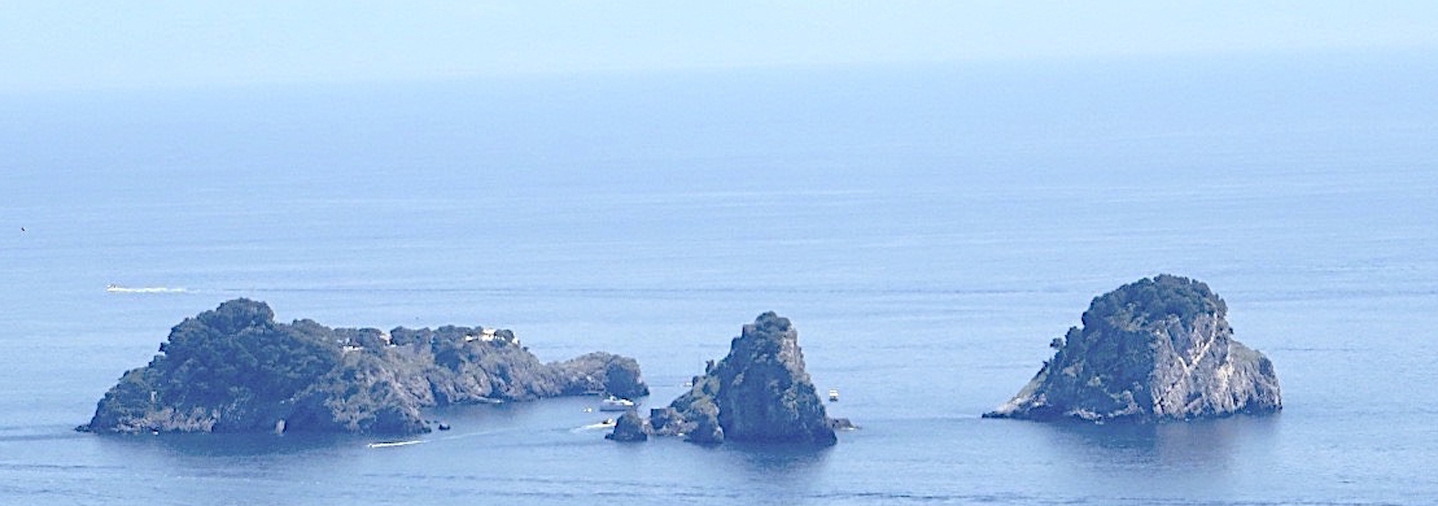“…or some of them assert that the Sirenes of Homer are situated close to Pelorus [Cape Faro of Sicily, across from Scilla], and others that they are more than two thousand stadia distant, near the Sirenussae [cape of Sorrento], a three-peaked rock which separates the Gulfs of Cummaea [Bay of Naples] and Posidonium [Gulf of Salerno] …”
